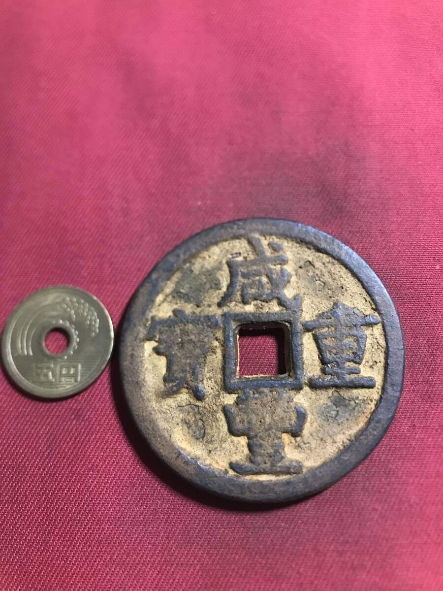 - 咸 豊 重 寶 背 当 九十 と 記号 銅銭 大きくて
