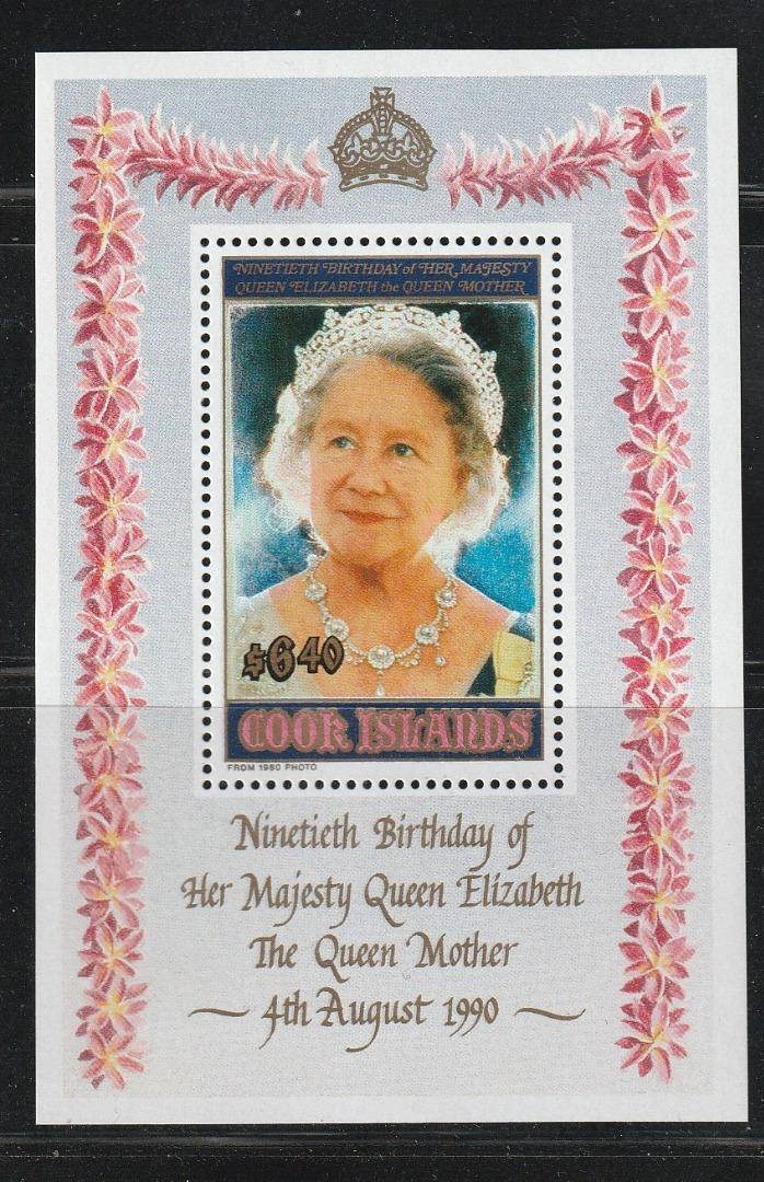 - (クック島)1990年英皇太后90歳誕生日小型シート、スコット評価13ドル(発送について、説明欄参照)