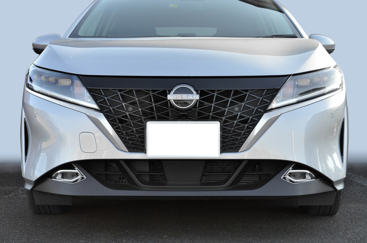 - E13 ノート フロントFOGガーニッシュ 送料込み クローム ガラスコーティング施工済み