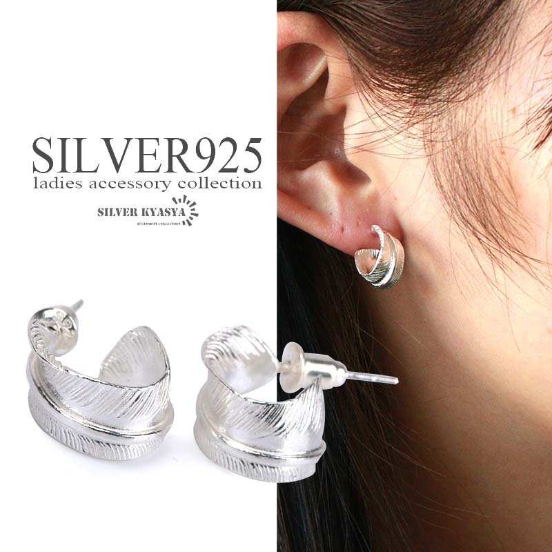 - シルバー925 フェザーピアス C型フープ ピアス フープピアス 女性 小ぶり 金属アレルギー 対応 両耳用 2点