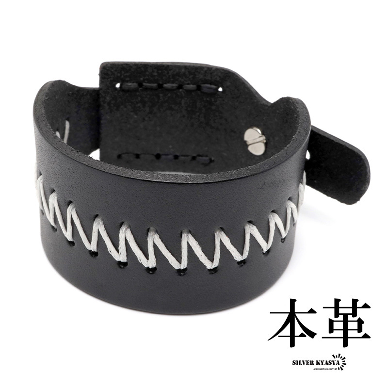 > ステッチ レザーバングル 太幅 レザーブレスレット 太幅 幅広 ブラック メンズ 腕輪 牛 本革バングル リアルレザー