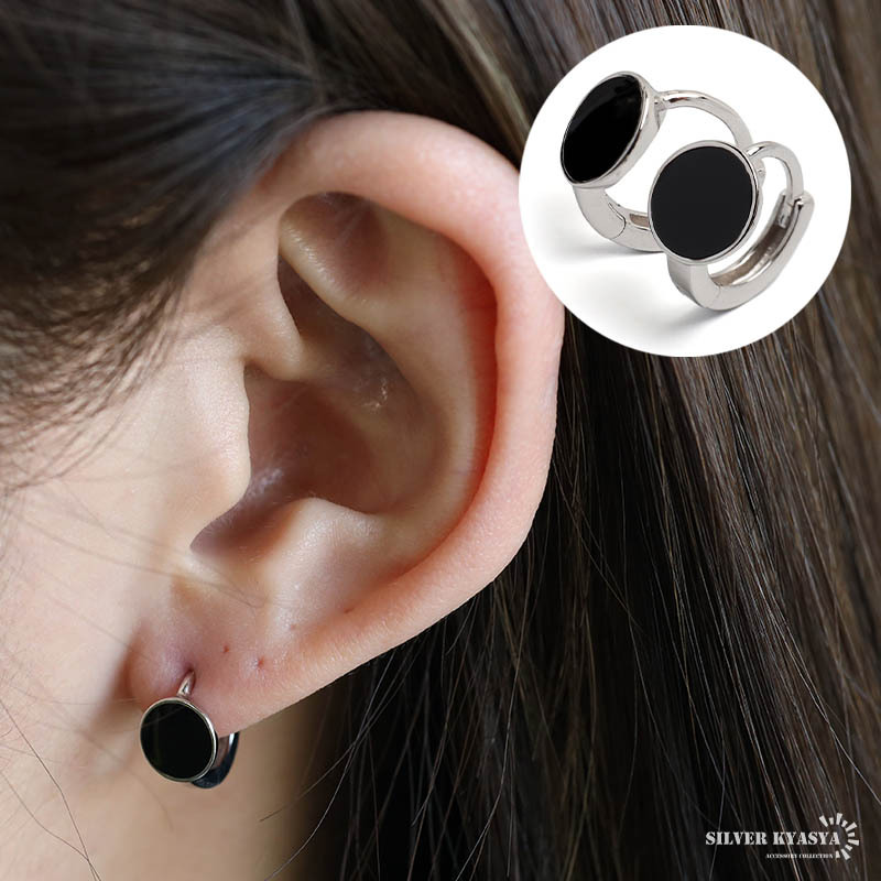 - シルバー925 ブラック フープピアス ラウンドピアス シルバーピアス シルバー シンプル レディース 金属アレルギー対応 両耳