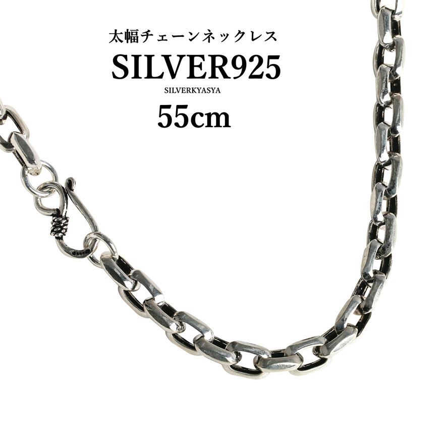 - シルバー925素材 太幅 ネックレス 925 チェーンネックレス 55cm 存在感抜群