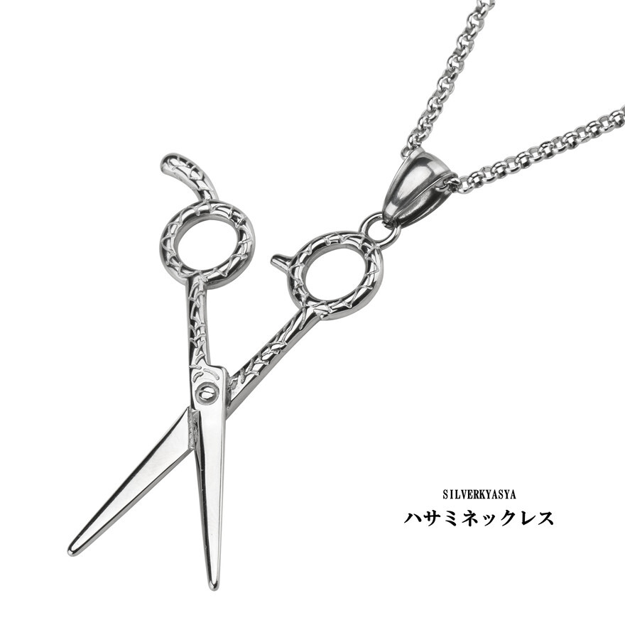 - ステンレス ネックレス ハサミペンダント 鋏 はさみ ロールチェーン50cm 美容師 ネックレス お洒落