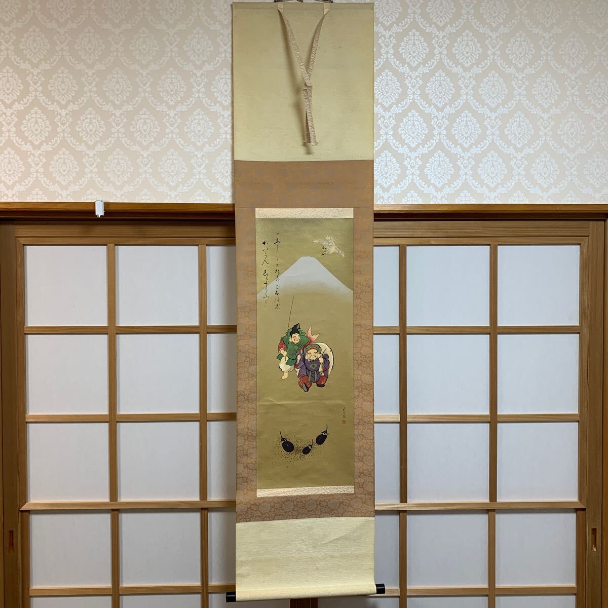 - 掛軸 模写 富士鷹茄子 福神図 木箱有り 紙箱無しNo.110