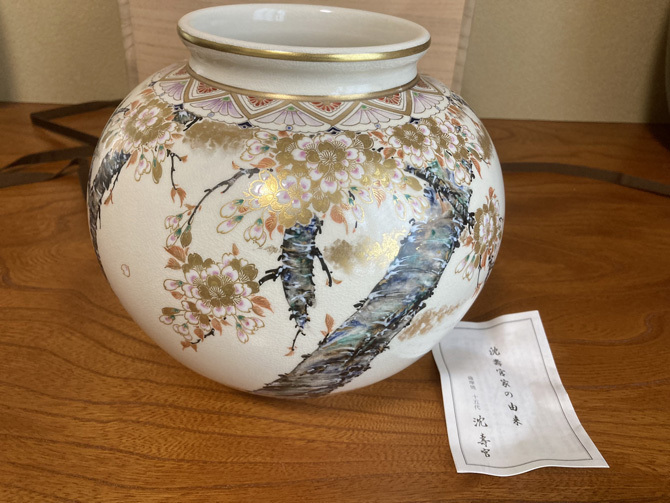 - 花瓶 薩摩焼 白薩摩桜花図 十五代沈寿官 1013