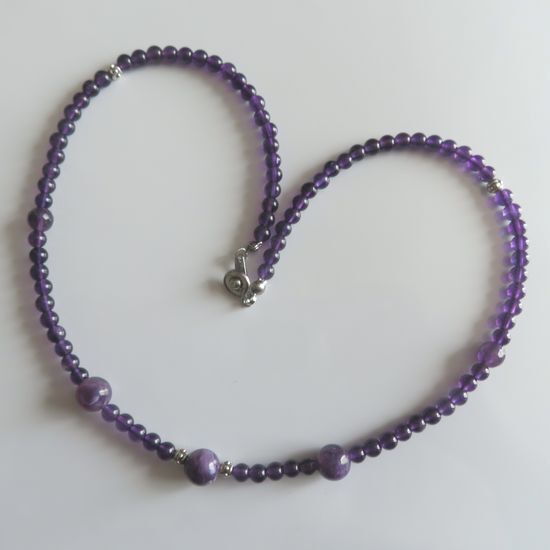 - 送料無料、アメジスト、チャロアイトのネックレス