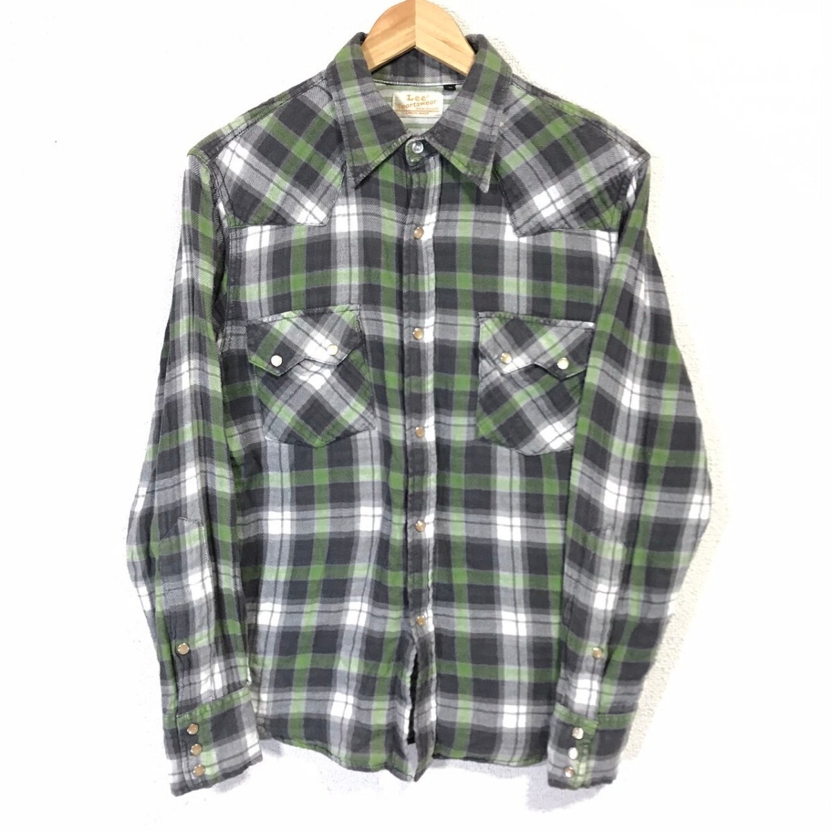 - f1613dL Lee リー サイズM サンプル品 長袖シャツ ネルシャツ グレー×グリーン チェック柄 メンズ ウエスタンシャツ 古着 アメカジ
