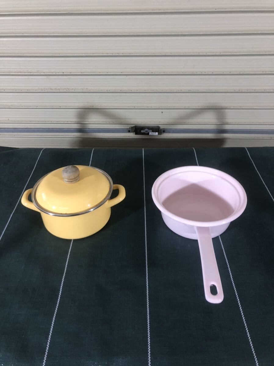 - ★ホーロー鍋 2点 レトロ 両手鍋 片手鍋★tano