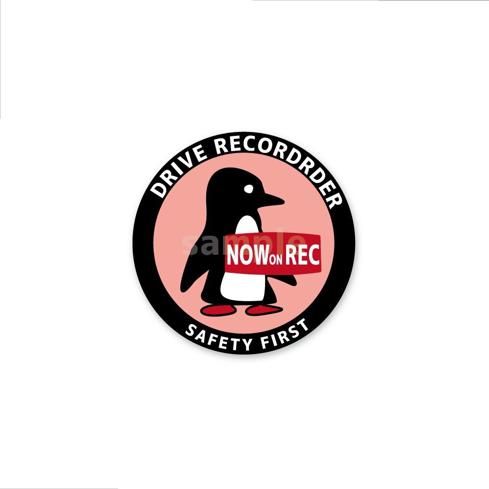 - ペンギン ドラレコステッカー (8cm丸形:ピンク)パロディ 煽り防止 ドライブレコーダー 録画中
