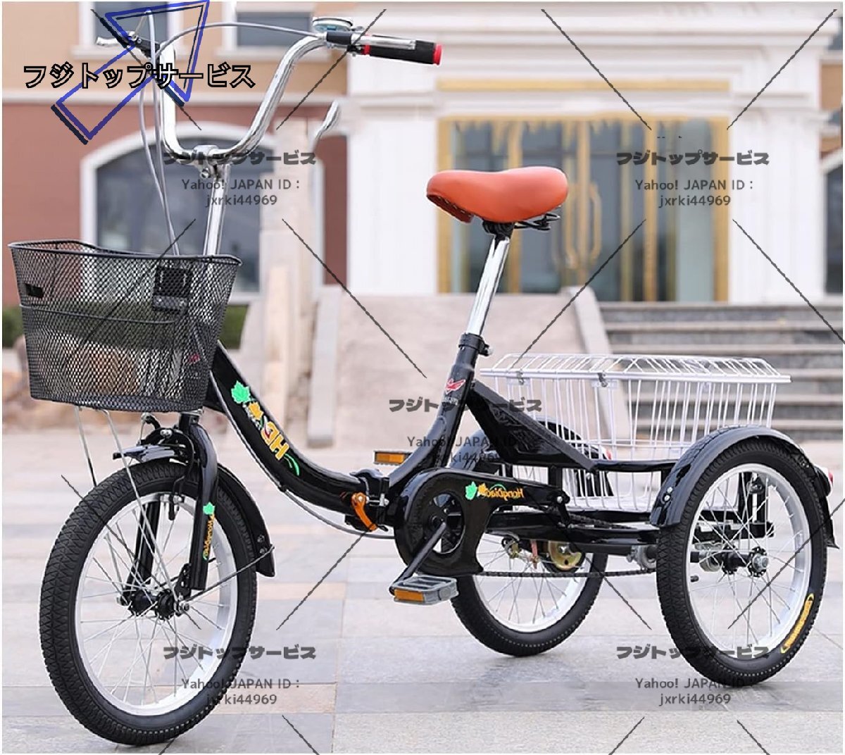 - 人気推薦☆大人用三輪車 大型バスケット付き リクリエーシ 高齢者用ペダル自転車 16インチホイール バスケット付き折りたたみ式三輪車 126