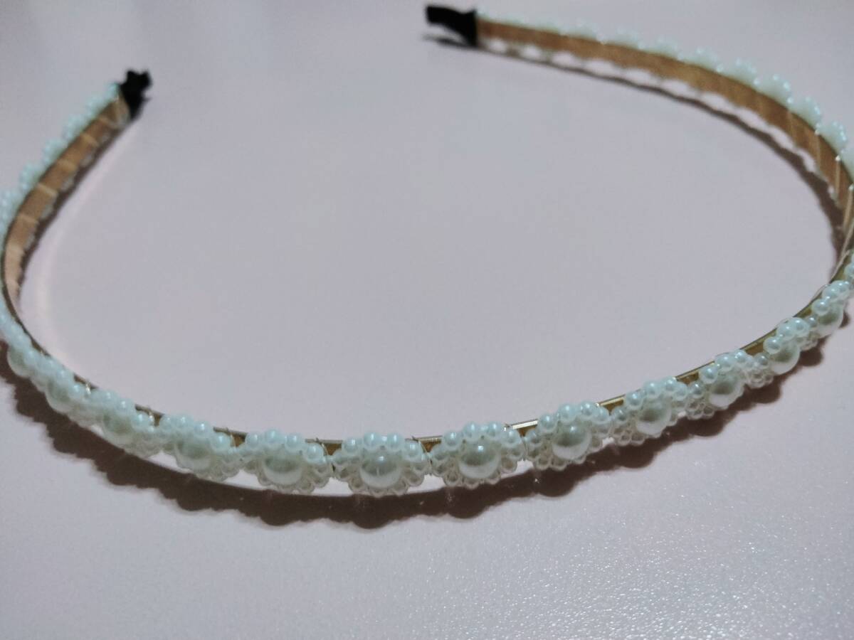 - カチューシャ【フラワー】白 ヘアバンド ヘアーバンド 花 パール(フェイク) 真珠(フェイク)