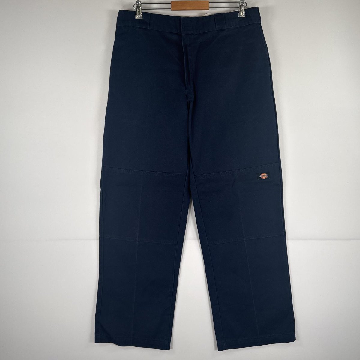 - 古着 ディッキーズ Dickies ワークパンツ 作業着 ワンポイント ロゴ ストレート ダブルニー 大きいサイズ ネイビー メンズ