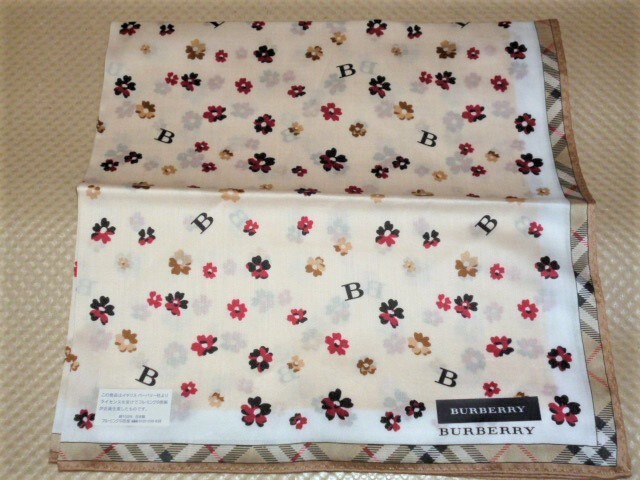- バーバリー BURBERRY ベージュ ローマ字B 花柄 縁ベージュ ノバチェック ハンカチ 正規品 新品 B58