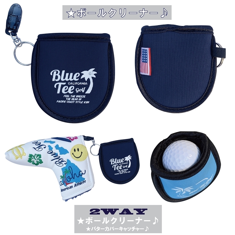 - 〇3オークション♪大変便利♪【ネイビー:パームツリー】ブルーティーゴルフ【2WAY ボールクリーナー+パターカバーホルダー】BC-001