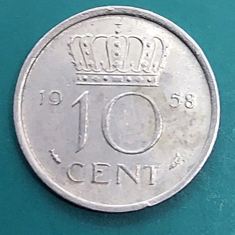 - オランダ 10セント 1958年 ユリアナ女王 ニッケル貨 ヴィンテージコイン アンティークコイン 海外硬貨 外国硬貨