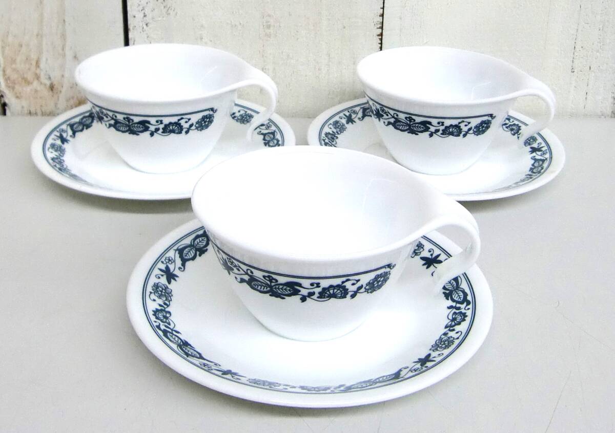 - レトロ アンティーク *CORELL コレール *カップアンドソーサー *3点まとめ セット 3客 *オールドタウンブルー *ヴィンテージ 食器