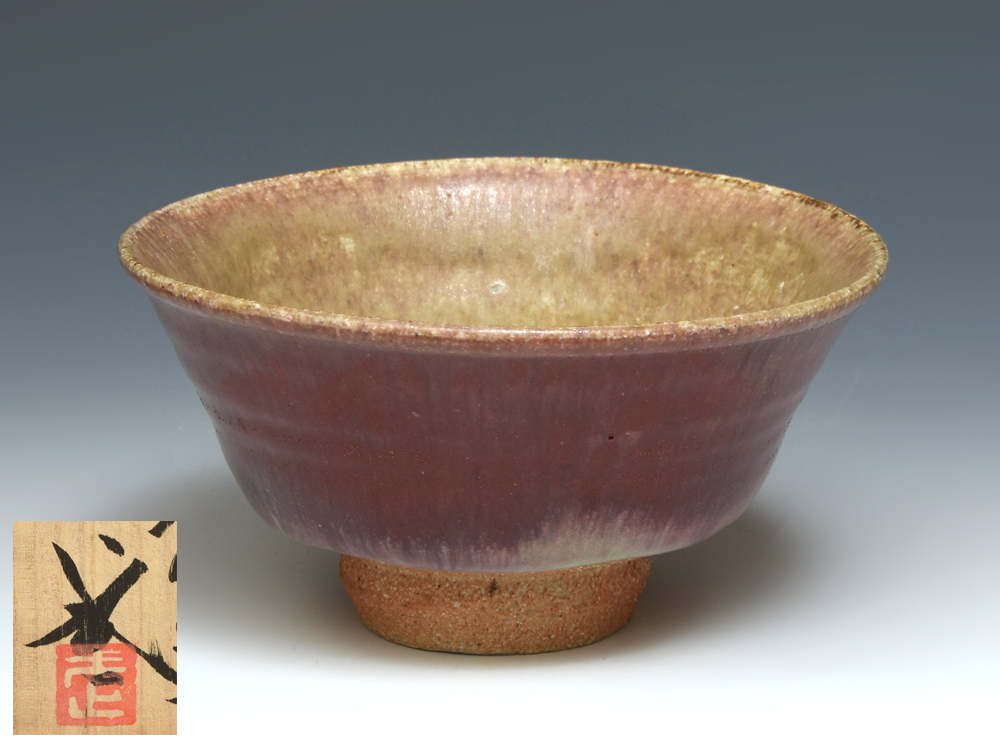 > 河井武一(造)紫紅茶碗 共箱 菓子器 茶道具 陶磁器 辰砂 / 叔父 人間国宝 河井寛次郎 バーナード・リーチ 民藝 z9252o