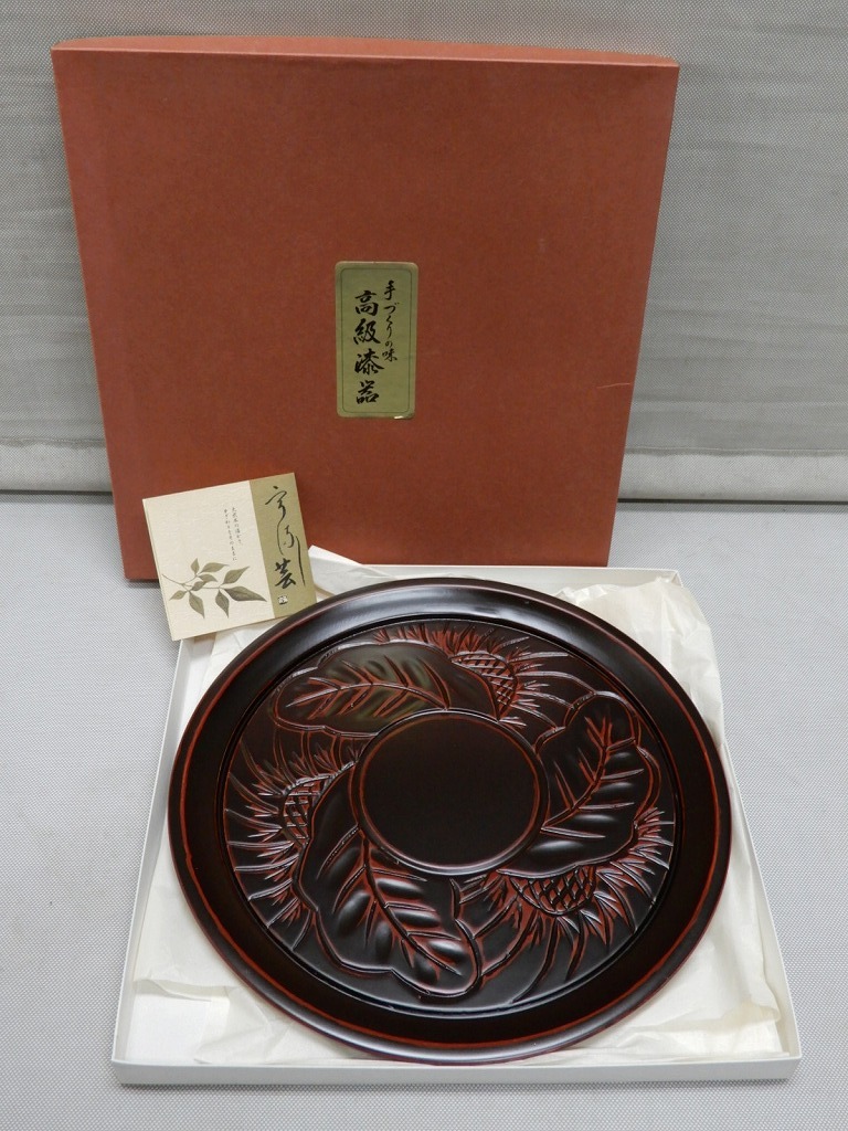 - ●天然木 高級漆器 10.0 丸盆 鎌倉菊 茶道具 お盆●