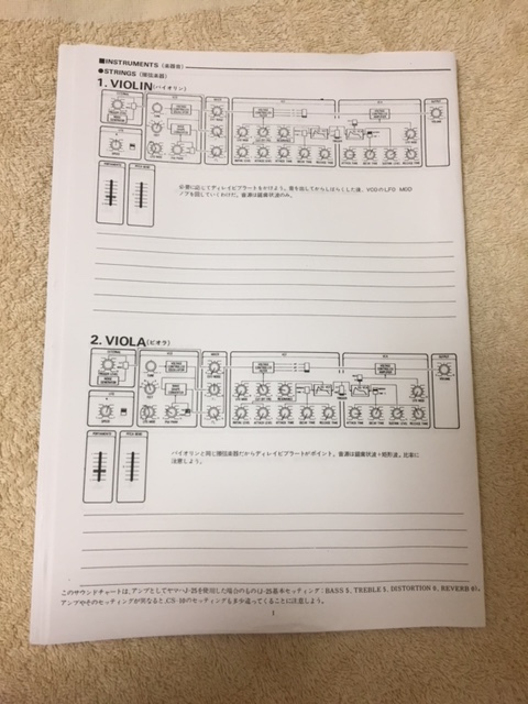 - YAMAHA ヤマハ CS-10用音色チャート 30音色