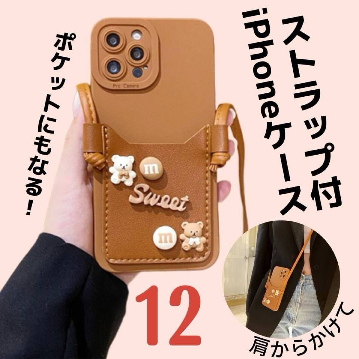 - くま iPhone12 ケース 落下防止 肩紐 ストラップ 紐 オシャレ