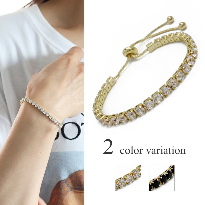 - (B-ホワイト) テニスブレスレット テニスチェーン 女性 CZ フルエタニティ ビジュー ライン ゴールド 金 プチプラ