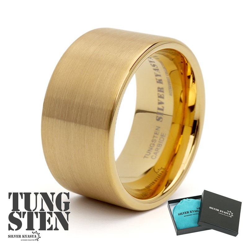 - (31号) タングステン ワイド リング 12mm メンズ 指輪 ゴールド 18K IP つや消し つけっぱなしOK 専用BOX