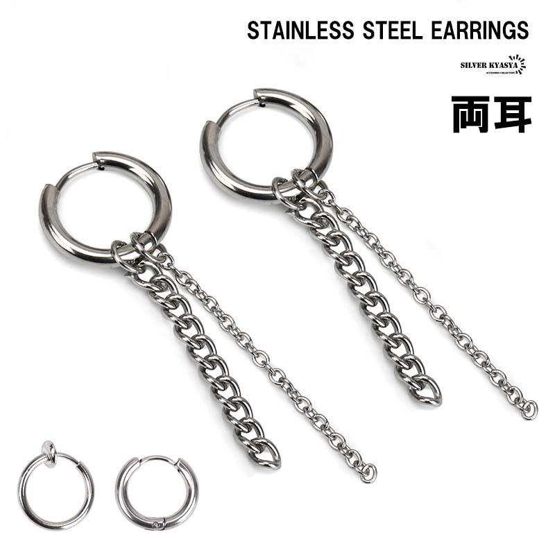 - (A-通常ピアス-穴要り) 両耳 穴不要 フェイクピアス ステンレスピアス フープピアス シルバーピアス リングピアス