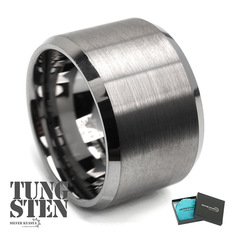 - (26号) 極太リング 超硬 タングステンリング ワイドリング 太幅 指輪 マット シルバー ヘアライン BOX付き