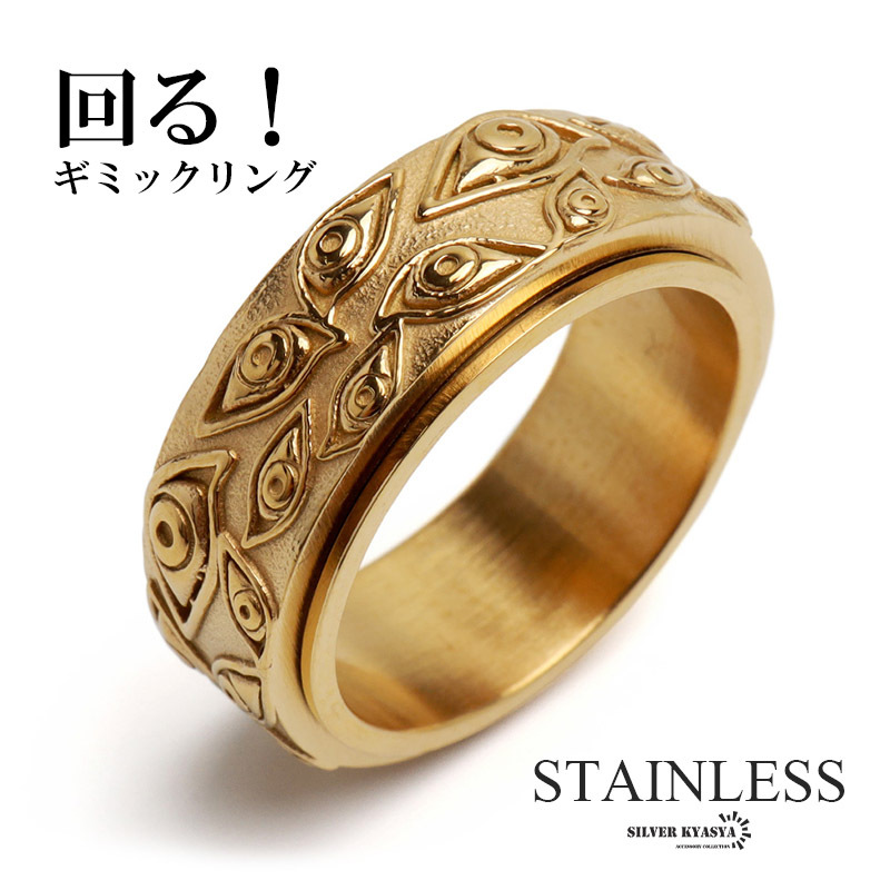 - (24号) ステンレス 回る ギミックリング ゴールドリング 18K GP ホルスの目 ごつめリング メンズ 金属アレルギー対応