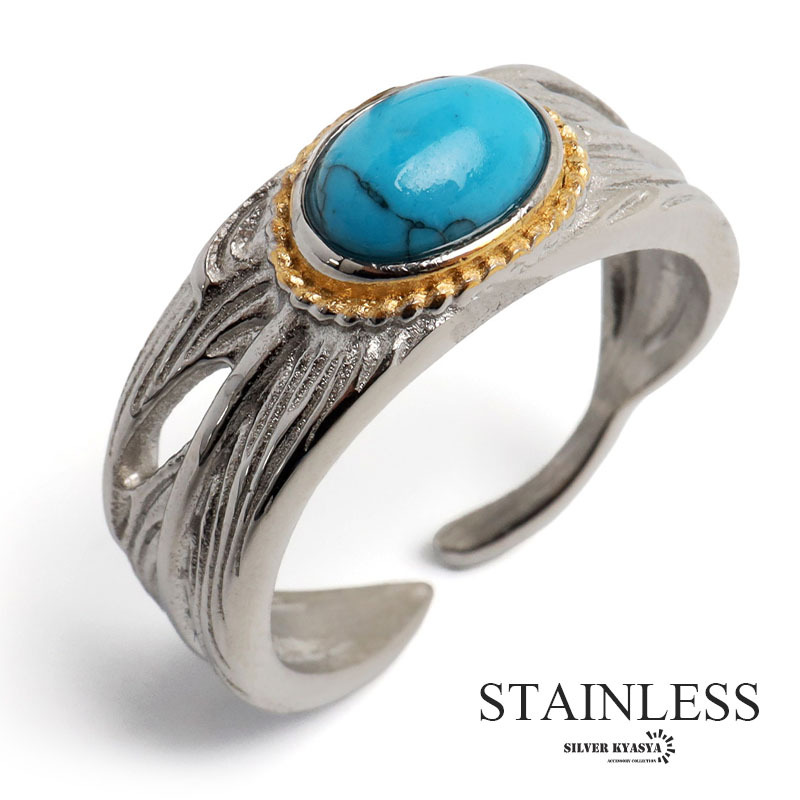 - (29号) ステンレス ターコイズ フェザーリング シルバー イーグル 一粒リング ネイティブ メンズ 金属アレルギー対応