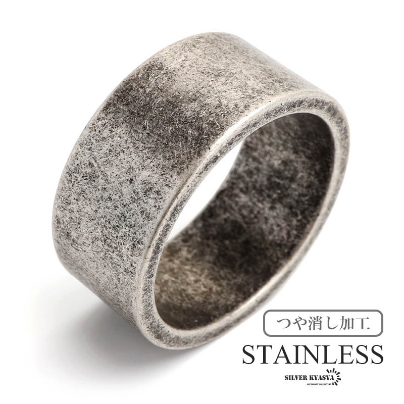 > (19号) ステンレス リング メンズ 指輪 つや消し マット ワイドリング 幅10mm アンティークシルバー 金属アレルギー対応