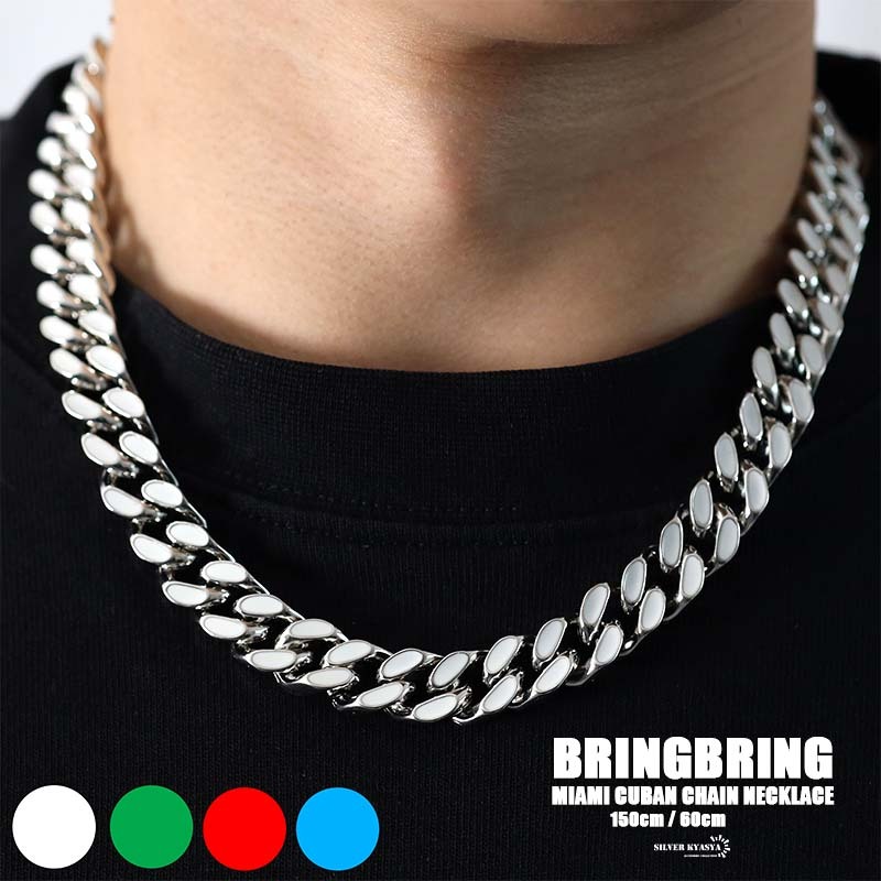 - (ホワイト、50cm) マイアミキューバンネックレス 喜平チェーン メンズ シルバーsilver アクセサリー カラフル