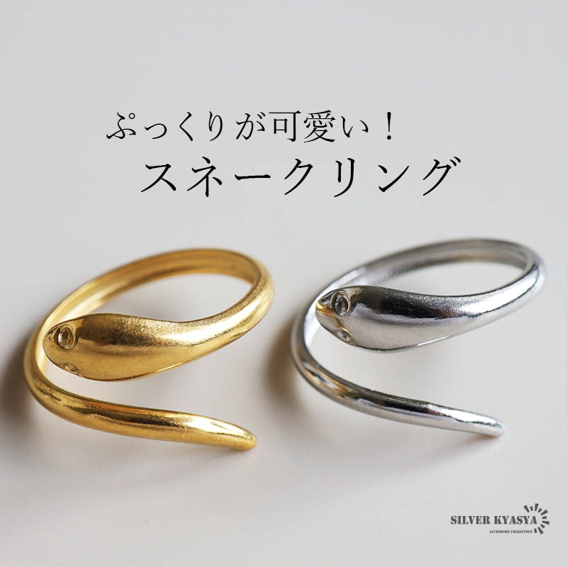 - (シルバー) スネークリング 巻き付く 蛇リング 18KGP ステンレス ぷっくり 個性的 フリーサイズ アレルギー対応