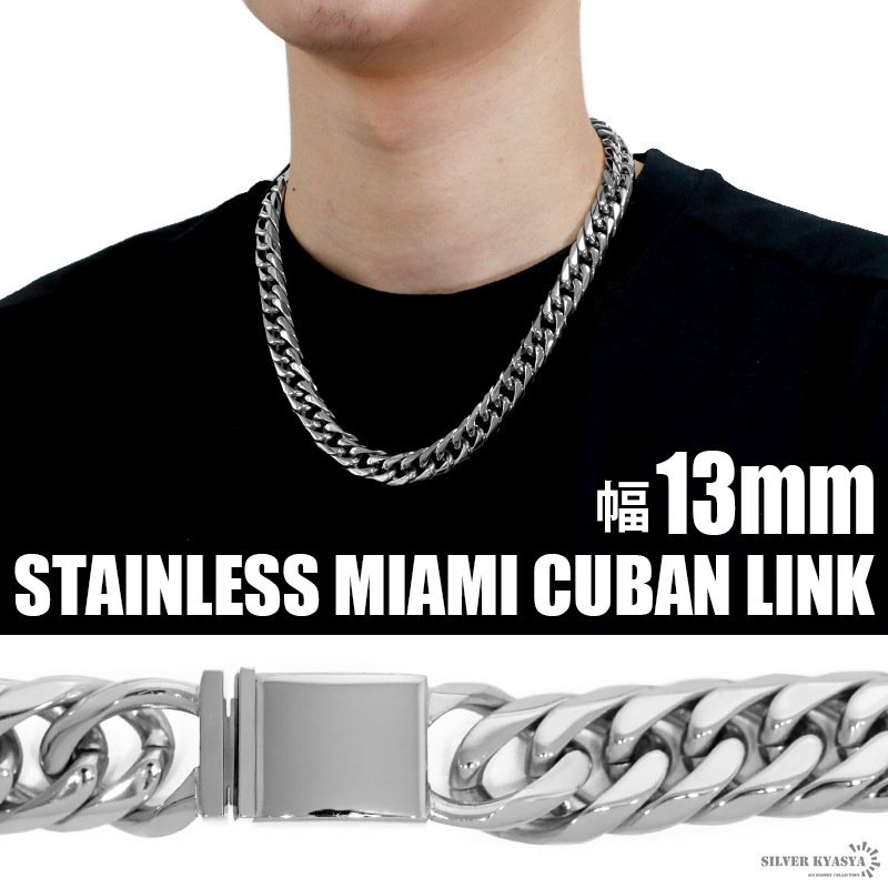 - (50cm) 幅13mm ステンレス 6面カット ダブル喜平ネックレス ステンレス シルバー 銀色 差し込み式