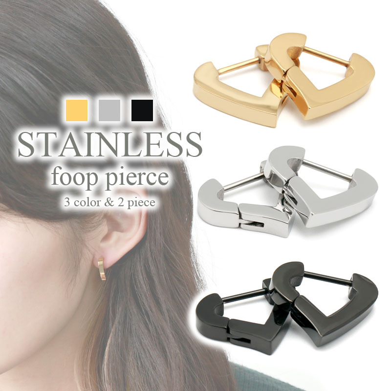 - (シルバー) 両耳用2点セット フープピアス モチーフ ステンレス 316L ゴールド シルバー ピアス 18G