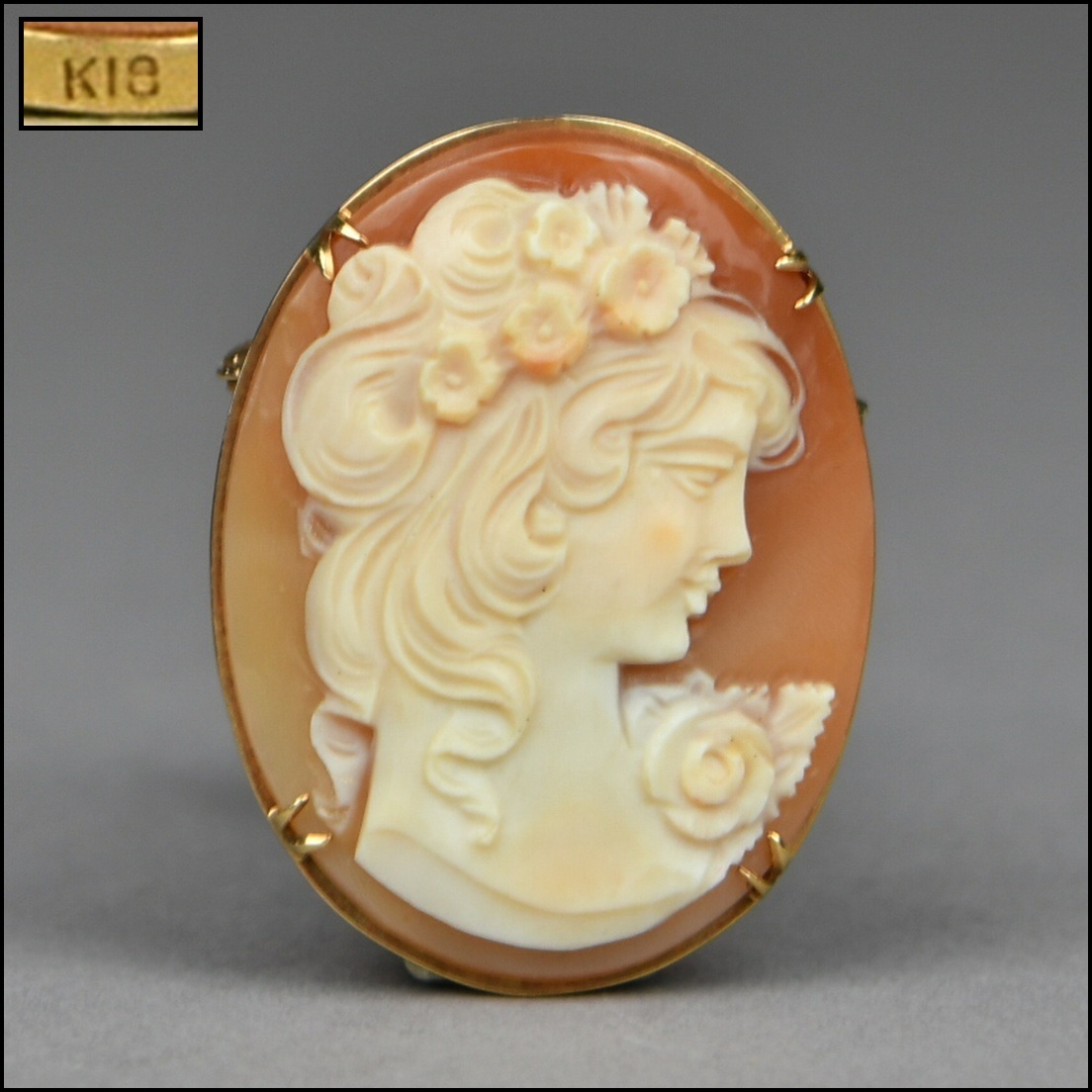 - カメオ 枠K18刻印 ペンダント トップ ブローチ 重さ約7g