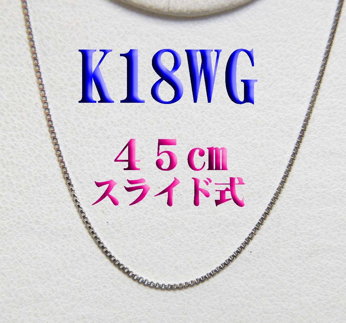> 特別セール!新品 K18WG 18金 ベネチアンネックレス スライド式45cm 0.6mm K18刻印入り