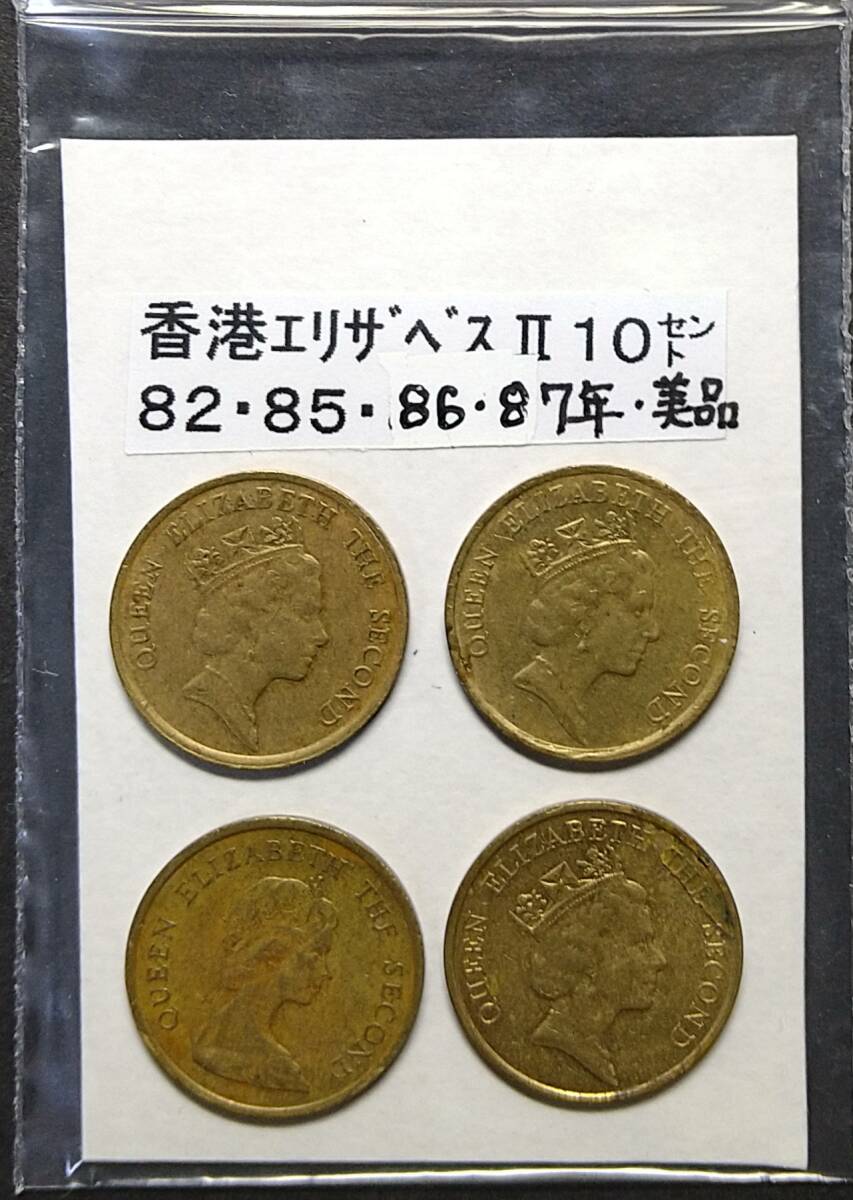 - 香港・10セント硬貨・1982年・1985年・1986年・1987年(4枚)【中古】