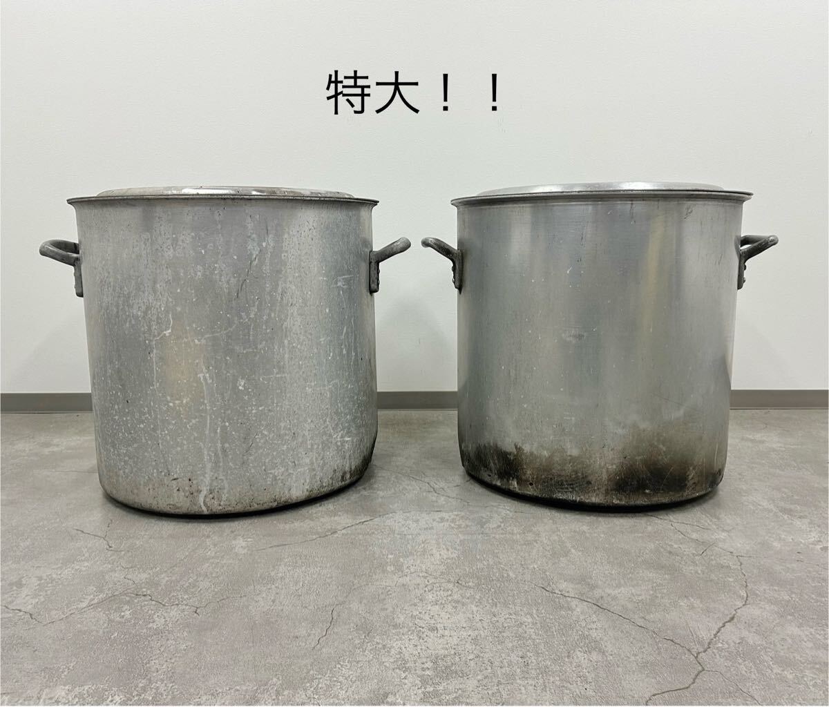 - SNT184 直接引き渡し限定 岡山市 寸胴鍋 ラーメン 大型 飲食店 業務用 アルミ 幅64cm 厨房用品 両手鍋 特大 調理器具 2個セット