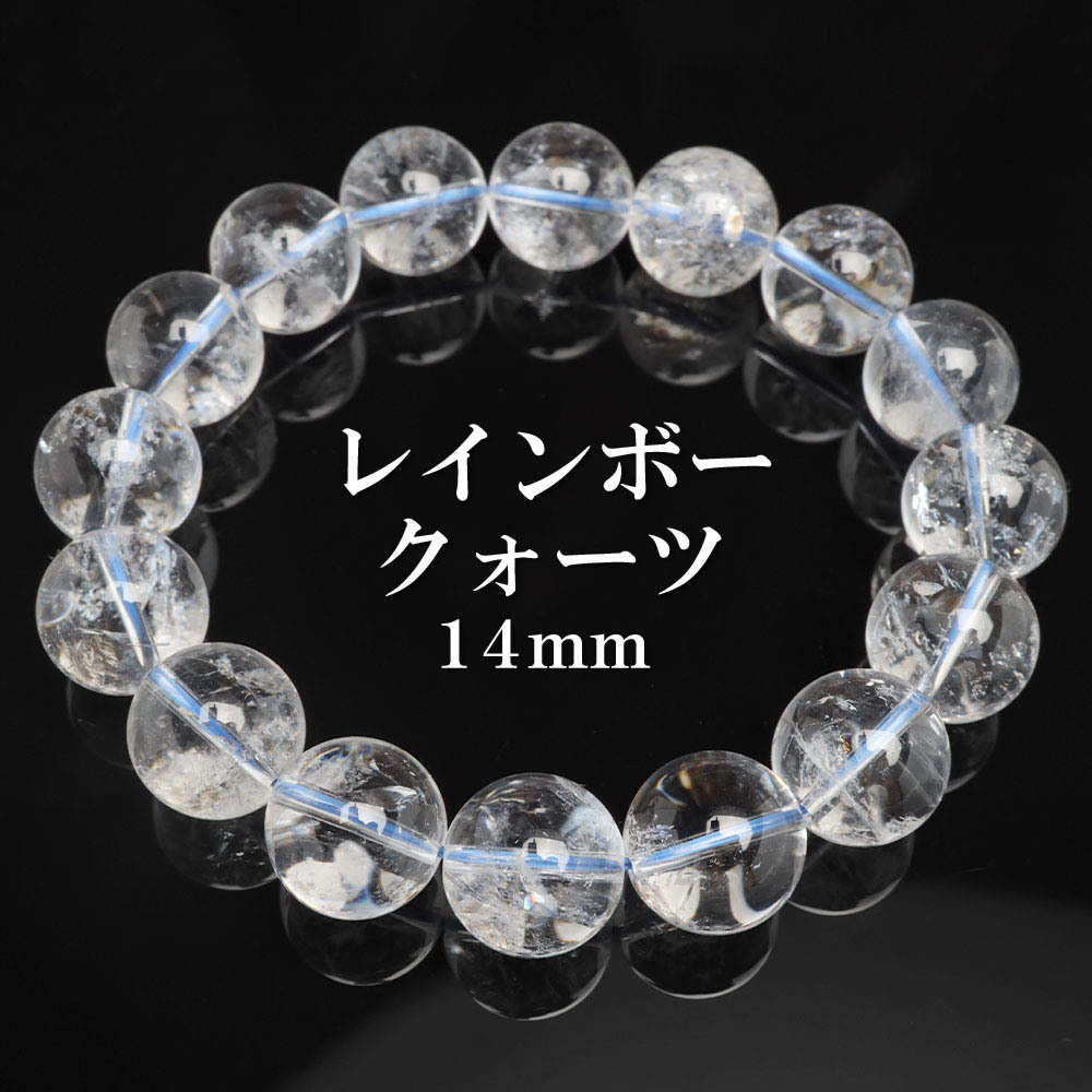 > (Mサイズ) 天然石ブレスレット パワーストーンブレスレット レインボークオーツ 14mm 天然 水晶 クリスタル メンズ 男性
