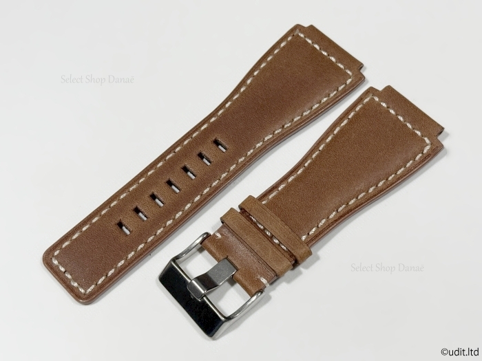 - ベルロス専用 24mm 34mm 腕時計レザーベルト ブラウン 時計用バンド Bell&Ross対応 インストゥルメント BR 01-92 03-92他