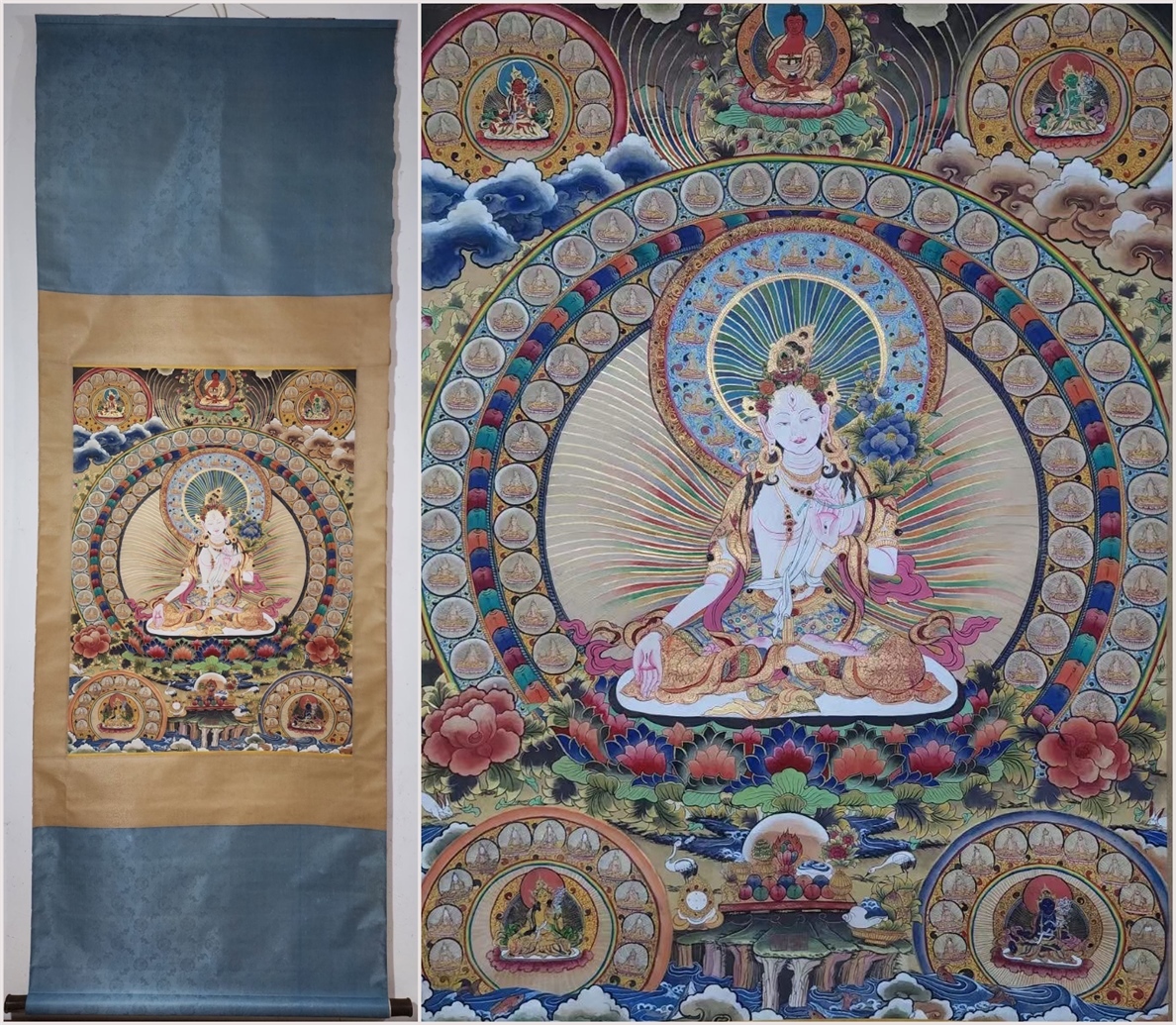 - 古美術 掛け軸 中国・近現代 「張大千書」 紙本 【タンカ仏像図】 立軸 書道 巻き物 肉筆保証 唐物 古画 画心87x64cm LT-250253