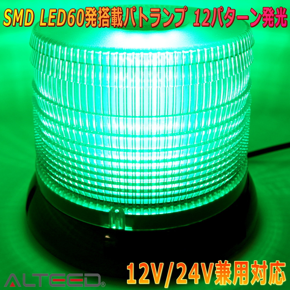 > ALTEED/アルティード 自動車用60LEDパトランプ 緑色発光 円筒型回転 12パターンフラッシュライト 12V24V兼用