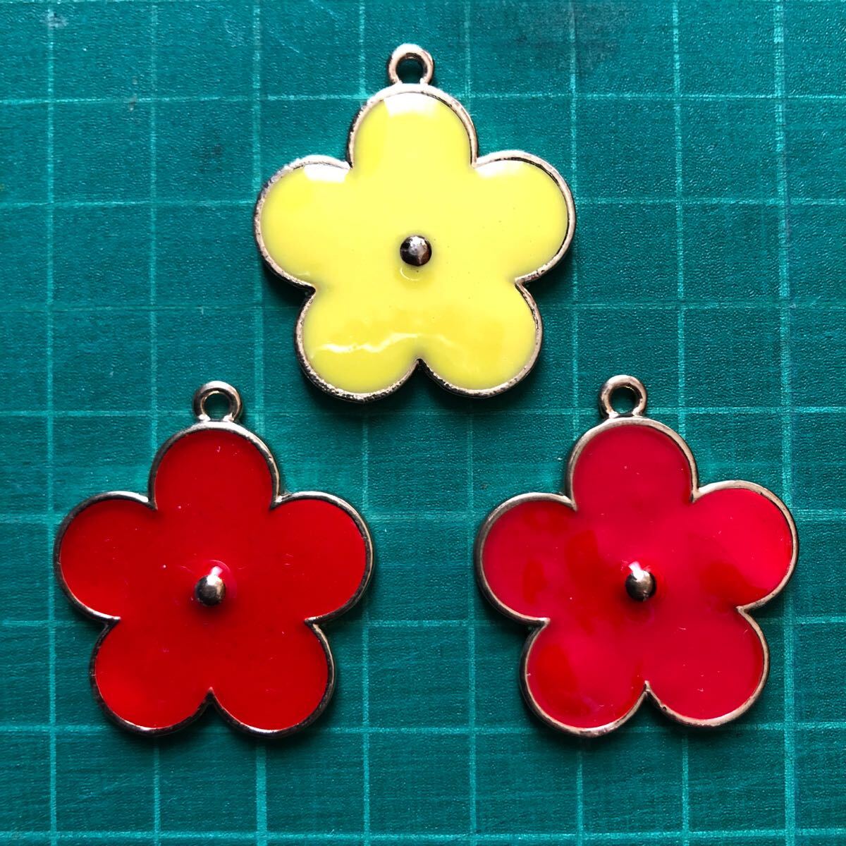 - メタルパーツ フラワー 花 3個セット 赤 黄 大きめ ハンドメイドパーツ エポキシ チャーム