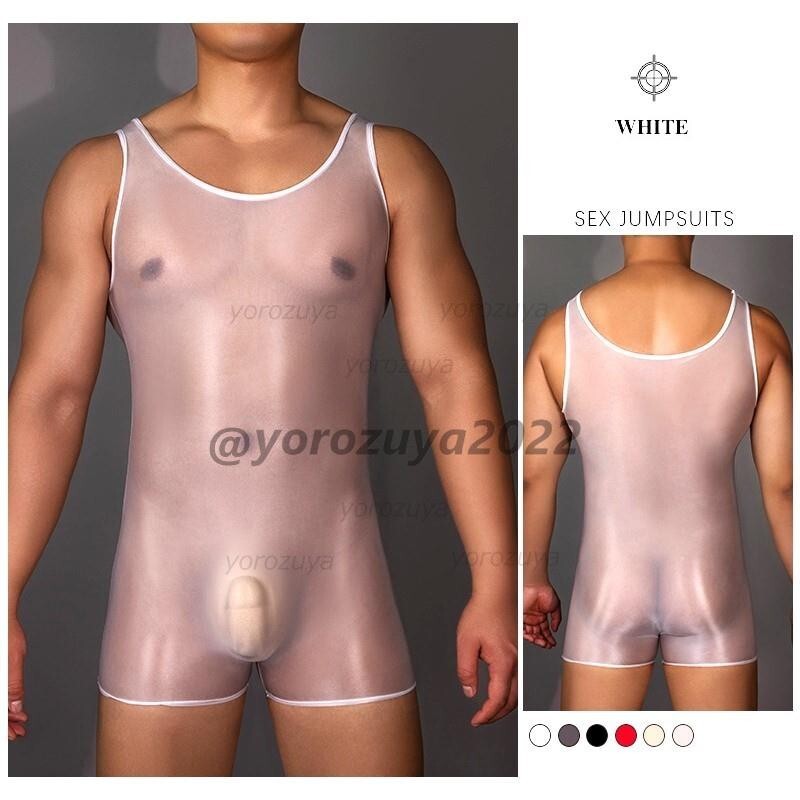 > 158-177-20 メンズ 光沢シースルー フィッティング ボディスーツ【ホワイト,F】男性 コスプレ 露出 ナイトウェア ランジェリー セクシー .1