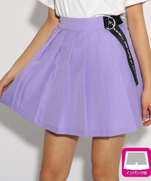 > ラスト 新品 PINK-latte ニコラ掲載サイドベルトプリーツ スカート ライトパープル(081) 16(S160cm) 定価3190円