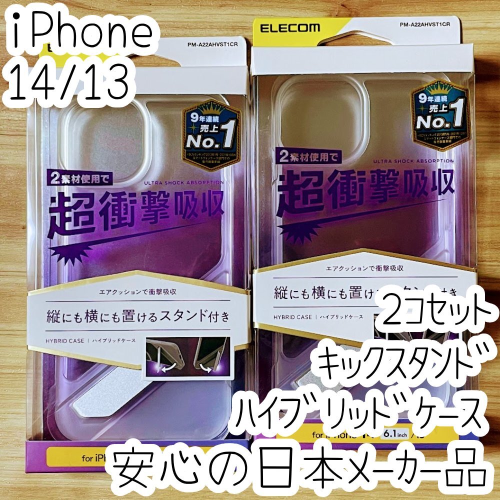 - 2個 iPhone 14 13 ケース カバー ハイブリッド クリア スタンド機能付き 縦横対応 側面TPU 621
