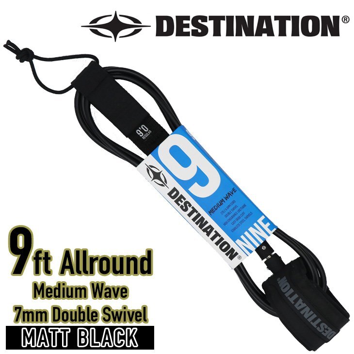 > ■DESTINATION■最新型 9ft Regular [MATT BLACK] オールラウンド用 マットブラック ロング リーシュコード ディスティネーション