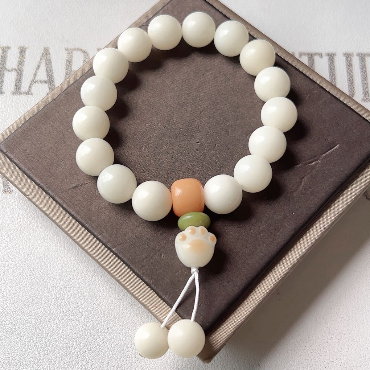 - ◇菩提樹の根◇白玉菩提+風化菩提1粒◇肉球◇ブレスレット◇数珠◇念珠◇巾着袋つき◇プレゼントにも020B297